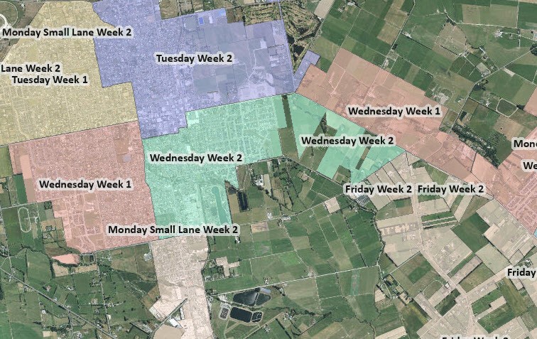 Description: Areas with kerbside collection service. As new properties are included in the kerbside collection, these boundaries are edited to include these new properties. Attribute information includes collection week and day pickup.
